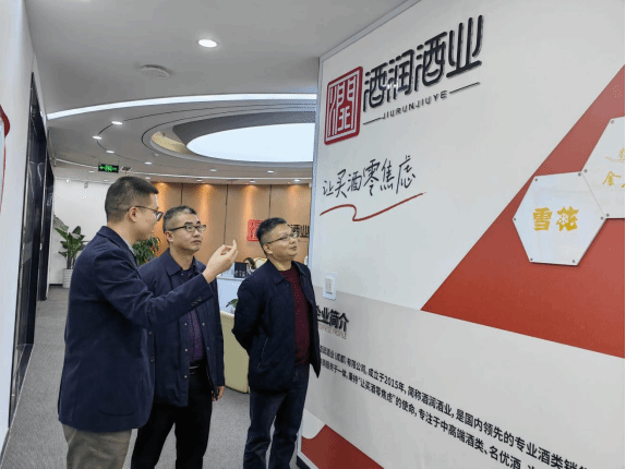 李建强一行首先参观了公司的品牌展厅与运营中心,深入了解了酒润酒业在品牌建设、市场拓展及互联网营销等方面的创新实践与显著成果。并随后进行座谈。