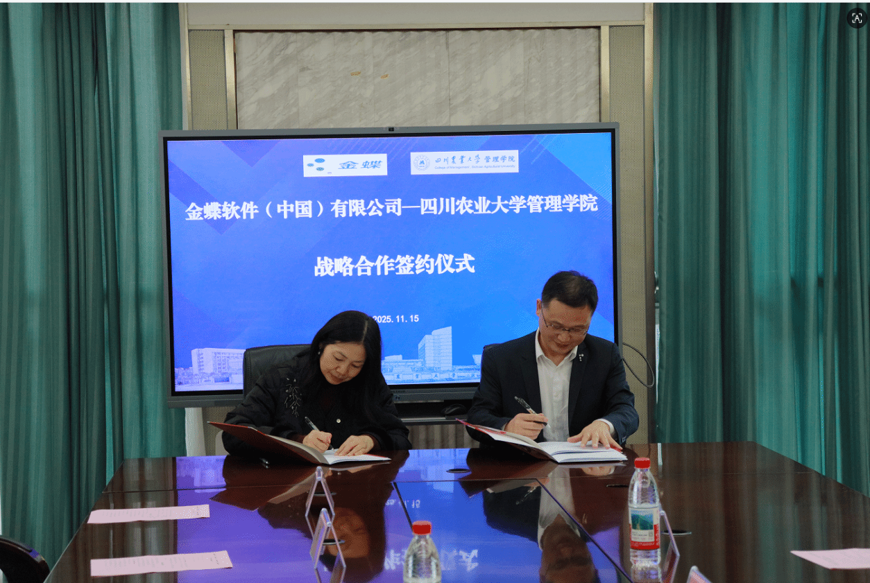 11月15日下午,学院与金蝶软件(中国)有限公司院企战略合作签约仪式在成都校区1教304室举行。学院副院长李冬梅、金蝶软件(中国)有限公司市场中心副总裁陈跃,院企双方相关负责人共同出席签约仪式。仪式由学院财务管理系主任王运陈教授主持。此次签约标志着双方在推动高等教育数字化转型、深化产教融合、协同育人机制创新方面迈出关键一步,是响应国家“教育强国”“数字中国”战略的重要实践。