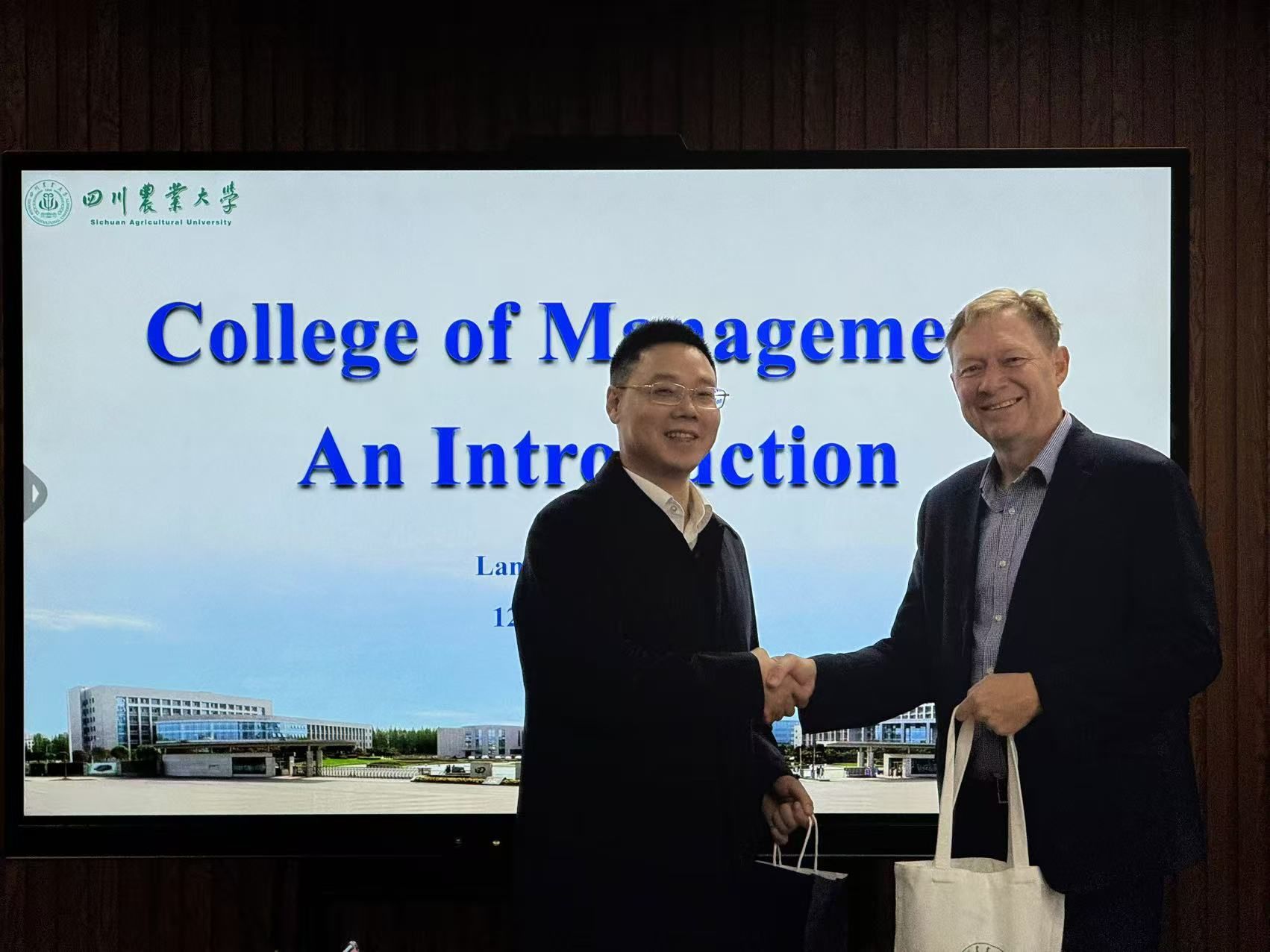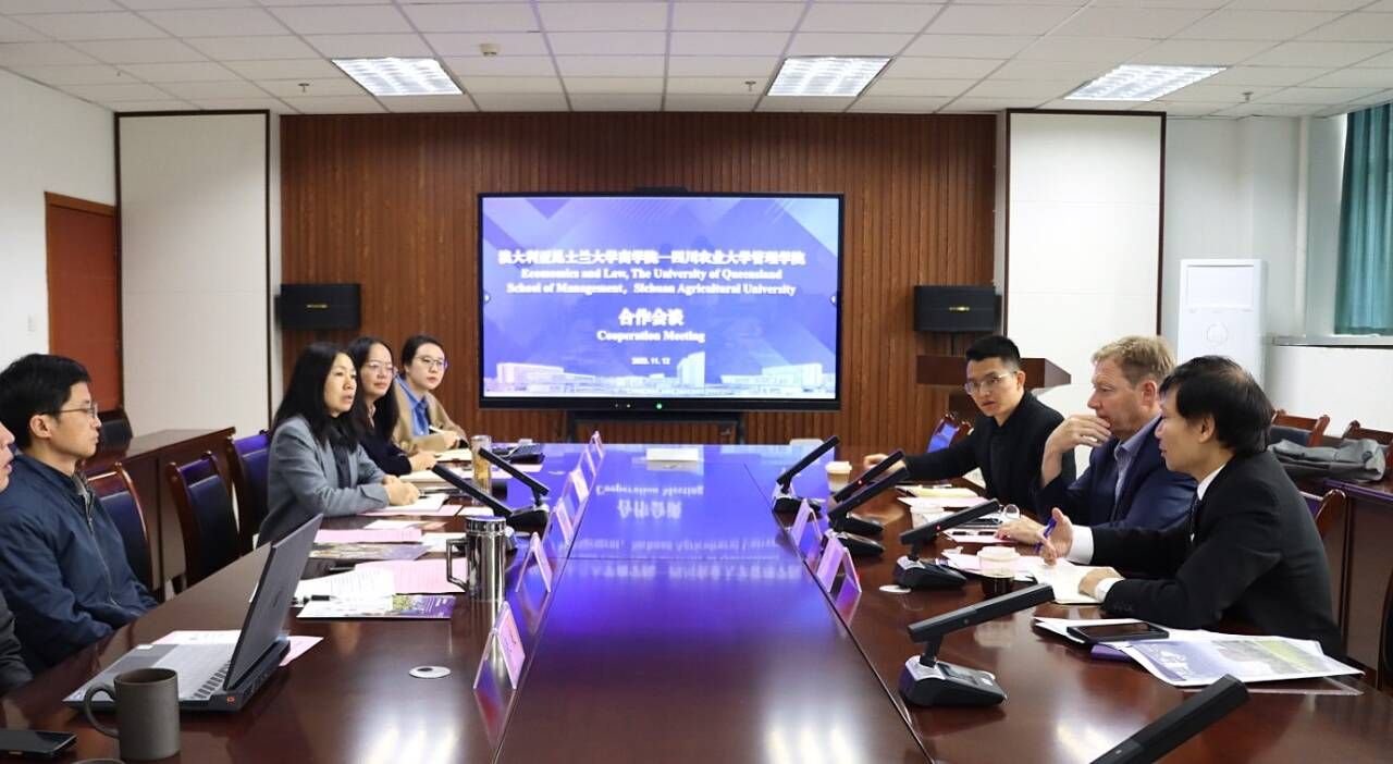 2025年11月12日,澳大利亚昆士兰大学商学院执行院长Andrew Griffiths教授、大中华区区域经理Michael Chen先生一行访问四川农业大学管理学院。学院院长蓝红星教授、副院长李冬梅教授、王玉峰教授及教师代表参加了合作会谈。座谈会由李冬梅教授主持。