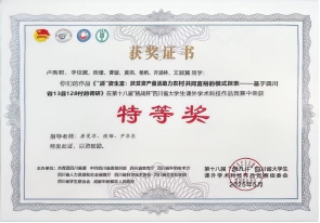 在主体赛事中,由唐曼萍、侯维、尹华东等联合指导,卢禹君、李佳翼等八名同学完成的《“活”资生富:扶贫资产盘活助力农村共同富裕的模式探索》项目荣获省级特等奖。研究团队深入四川省13个县128个村开展实地调研,系统分析了扶贫资产的运营现状和盘活路径,形成了可复制、可推广的资产盘活模式,为巩固拓展脱贫攻坚成果、有效衔接乡村振兴提供了有价值的实践参考。