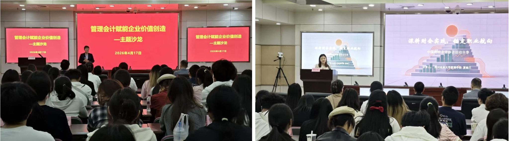 2026年4月17日下午,由IMA美国管理会计师协会主办、中国邮政集团有限公司四川省分公司协办的“管理会计赋能企业价值创造”主题沙龙暨企业参访活动在成都举办。我校管理学院夏晓兰副教授带领15名财会类学子受邀参会,与川内高校师生、行业代表共学交流。