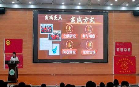 暑假社会实践校级十佳团队——"新火乡传,青贤共治"团队队长张雅铭进行了实践分享。她详细介绍了团队在暑假期间深入基层乡村的实践经历,充分展现了川农学子用专业知识服务基层群众、助力农业农村发展的青春风采与责任担当。