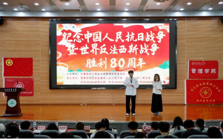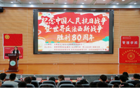 10月10日,管理学院团委联合学生农业经济研讨协会开展“纪念中国人民抗日战争暨世界反法西斯战争胜利80周年”主题示范性班团活动。学院党委副书记张翅、党委办公室主任兼团委书记马刚、党委办公室副主任兼团委副书记张婷雯、主席团全体成员及2025级新生共400余人参与活动。