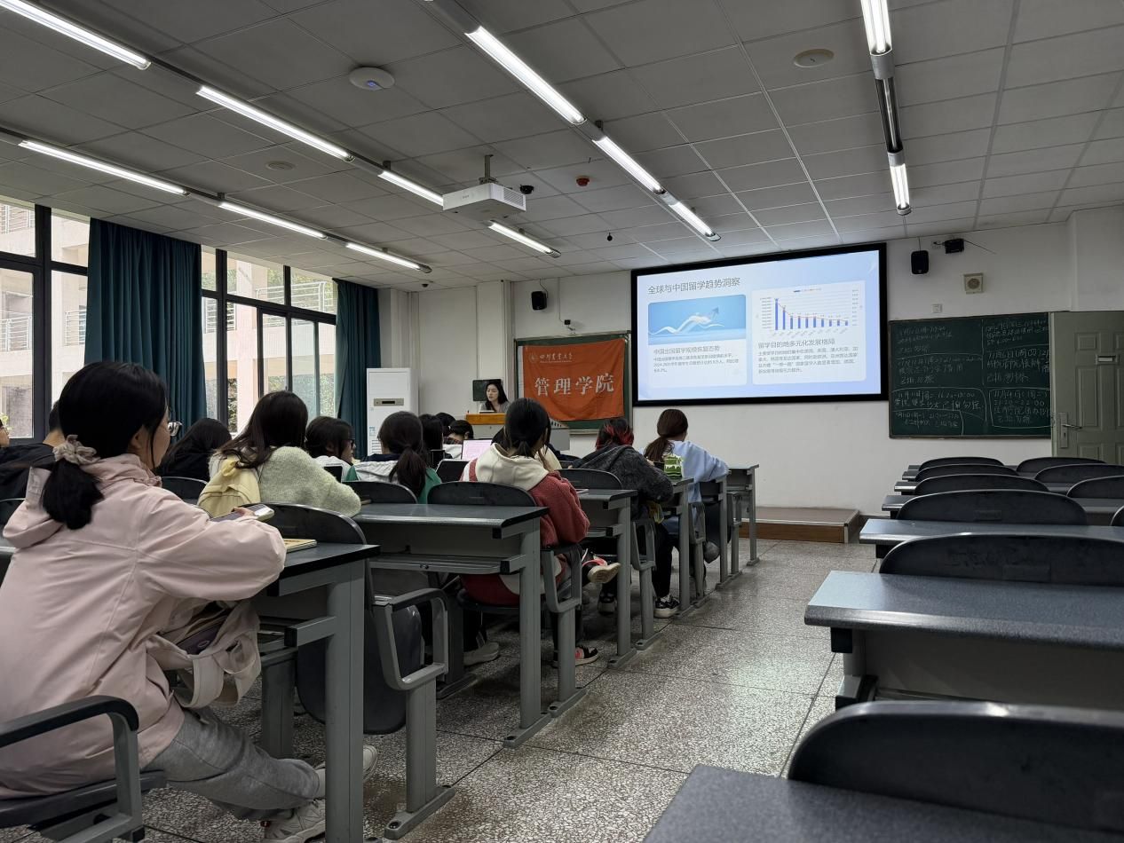 11月11日下午,管理学院联合蓝丝路国际教育在4B305教室举办“美英港新留学全解析与留学后就业”主题沙龙,旨在帮助学生拓展多元发展路径,科学规划学业与职业。活动特邀蓝丝路国际教育资深规划专家陈老师担任主讲。